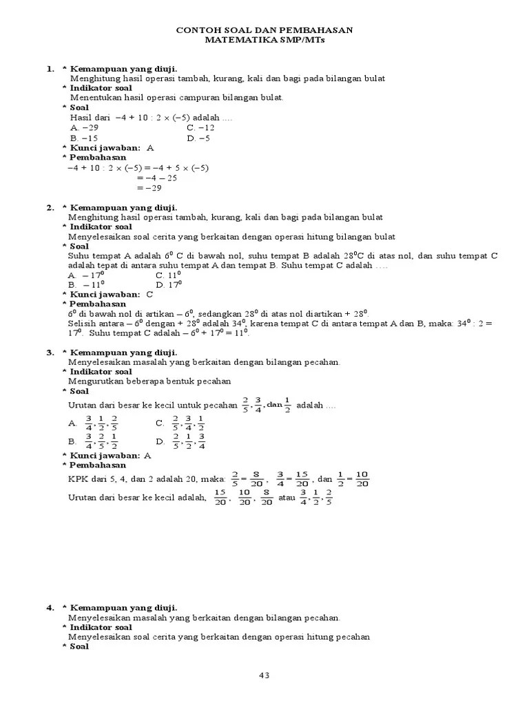 47+ Contoh Soal Bilangan Bulat Pecahan