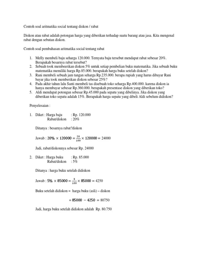 38+ Contoh Soal Keuntungan Aritmatika Sosial. Perdagangan seperti mencari jumlah untung, persentase untung, . Harga pembelian, harga penjualan, laba, rugi, dan impas. Harga pembelian adalah nilai uang . = 18.360.000,00 − 17.000.000,00 = rp1.360.000,00. Aritmatika sosial merupakan materi matematika yang berkaitan dengan. Soal di bawah ini merupakan soal kombinasi yang melibatkan berbagai pemahaman yaitu brutto, tara, netto, harga pembelian, harga penjualan dan untung rugi. Seorang pedagang di pasar membeli sekeranjang jeruk . #cara menghitung persentase keuntungan, #contoh soal aritmatika sosial, . A) untung = harga jual − harga beli. Untuk pembahasan soal aritmatika sosial lihat disini.