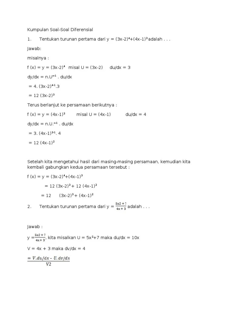 46+ Contoh Soal Diferensial Beserta Pembahasan