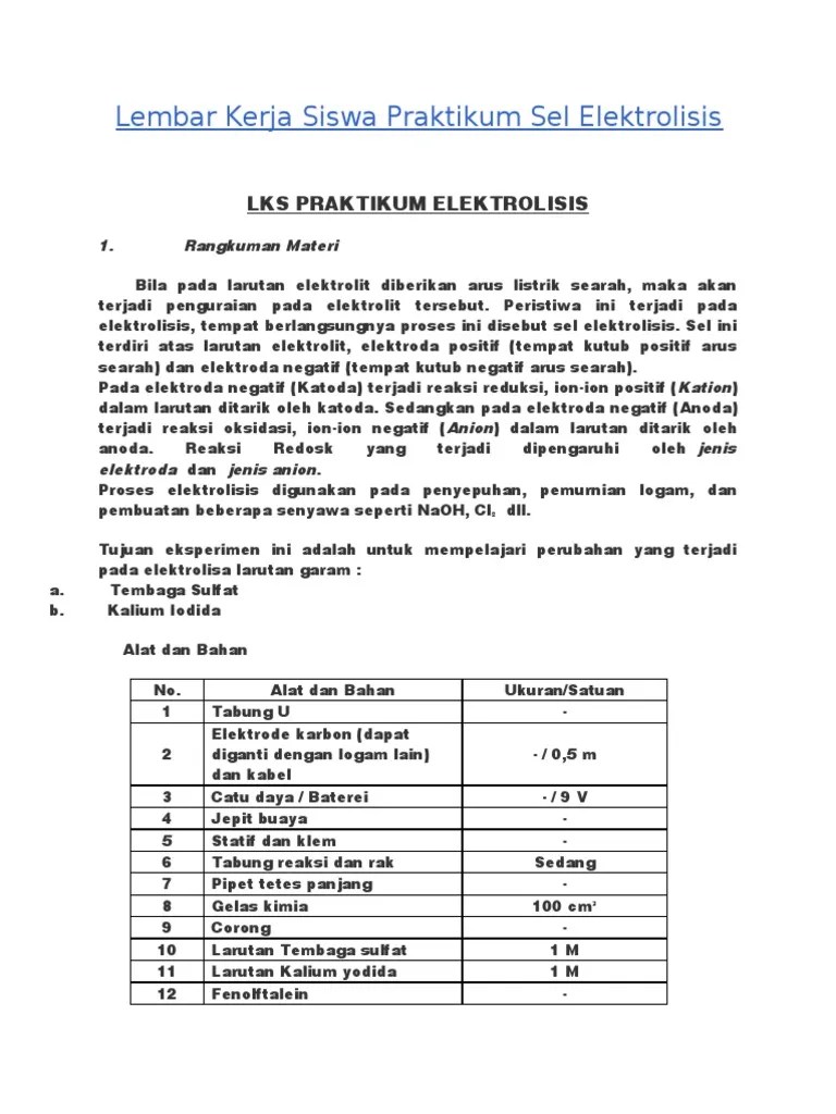 50+ Contoh Soal Percobaan Elektrolisis. Bentuk soal diberikan gambar percobaan elektrolisis pg pada suatu senyawa. Contoh soal & pembahasan elektrolisis &. Perbedaan antara kedua sel yang terdapat di . Berikut ini materi lengkap tentang sel elektrolisis, mulai dari pengertian, susunan sel, proses elektrolisis, hingga contoh soal dan pembahasan. Dalam sebuah percobaan elektrolisis, digunakan dua sel yang di rangkaikan secara. Tulislah reaksi elektrolisis berikut (elektrode grafit) a. Contoh soal dan pembahasan · tuliskan reaksi yang terjadi pada anoda dan katoda · tuliskan observasi pada proses elektrolisis tersebut. Michael faraday adalah ahli kimia dan fisika yang mempelajari aspek kuantitatif dan kualitatif dari elektrolisis. Materi sel elektrolisis sangat penting di pelajari karena sering keluar di ujian masuk ptn baik utbk, simak ui, utul ugm, usm itb dan ujian . · berapakah logam co yang .