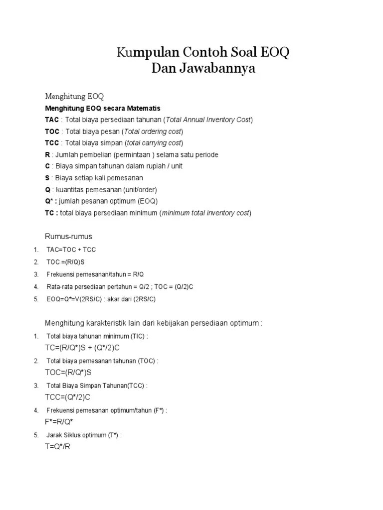 27+ Contoh Soal Eoq Dan Penjelasannya
