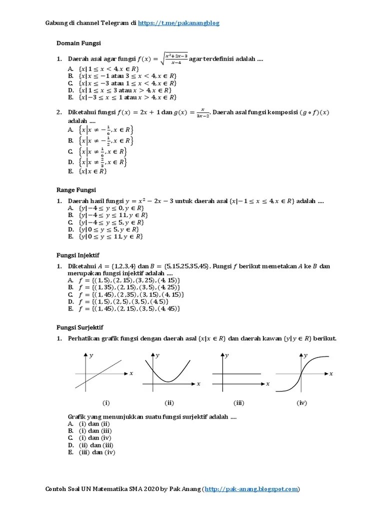 16+ Contoh Soal Fungsi Un Sma. Halaman ini memuat contoh soal un sesuai dengan tingkat level penalaran dengan materi fungsi. Kumpulan soal ujian nasional fungsi invers. Pembahasan soal fungsi un sma. Terdiri dari fungsi komposisi, fungsi invers, dan grafik . Ok kali ini kita akan membahas mengenai rangkuman materi dan contoh soal fungsi dan komposisi untuk kamu kelas 10 sma. Kalau ingin mendalam memahami bab ini . Jika nilai (f o g)(x) = 101, . Jika diketahui f(x) sebagai berikut : .