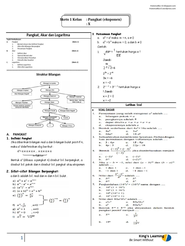 40+ Contoh Soal Eksponen Pangkat. Bentuk a n merupakan bentuk pangkat atau disebut juga bentuk eksponen. Pelajari ✓materi eksponen ✓rumus eksponen ✓contoh soal eksponen. Eksponen (pangkat) adalah nilai yang menunjukkan derajat kepangkatan. Bentuk akar merupakan akar dari bilangan rasional yang hasilnya ialah bilangan irasional (bukan bilangan rasional) Eksponen atau bilangan berpangkat merupakan topik yang cukup luas cakupannya. Eksponen bisa juga kita kenal sebagai bilangan berpangkat. Contoh soal dan pembahasan sifat sifat pangkat (eksponen). Berikut ini contoh soal eksponen beserta pembahasannya. Video ini berisi materi eksponen matematika kelas 11, dan di part kedua ini membahas contoh soal tentang operasi eksponen, dan sifat . 3 x 3 x 3 = 3³ = 27.